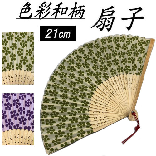 扇子 紙扇子 小花柄 和柄 21cm 1本 2柄 花柄 和装小物 せんす 緑 紫 お土産 和雑貨 海外でも大人気 レトロ モダン 男女兼用 浴衣 和装 夏 母の日 父の日