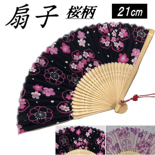 扇子 紙扇子 桜柄 和柄 21cm 1本 2柄 さくらせんす 黒 ピンク お土産 和雑貨 海外でも大人気 レトロ モダン 男女兼用 浴衣 和装 夏 母の日 父の日