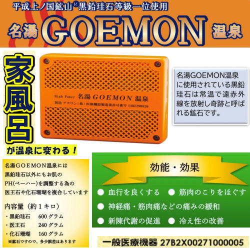 【正規販売店】 名湯GOEMON温泉 一般医療機器 黒鉛珪石入り 名湯ゴエモン 遠赤外線 自動消臭 殺菌効果 半永久使用可能 エステ効果 天然水素 五右衛門 風呂