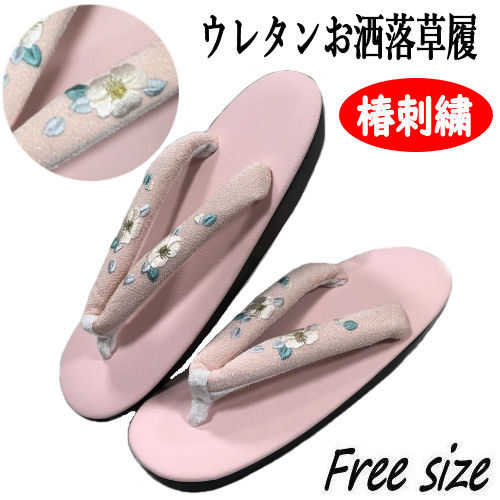 草履 単品 和装 ウレタンソール 椿柄 刺繍鼻緒 ピンク ぞうり フリーサイズ レディース きもの 着物 履き物 おしゃれ カジュアル 小紋 ゾウリ