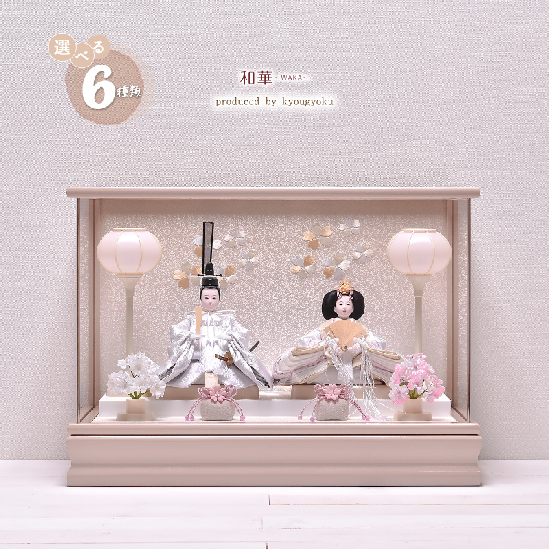 今年度は白木ケースのプレミアム和華が追加となり、一層華やかなお雛様に仕上がりました。