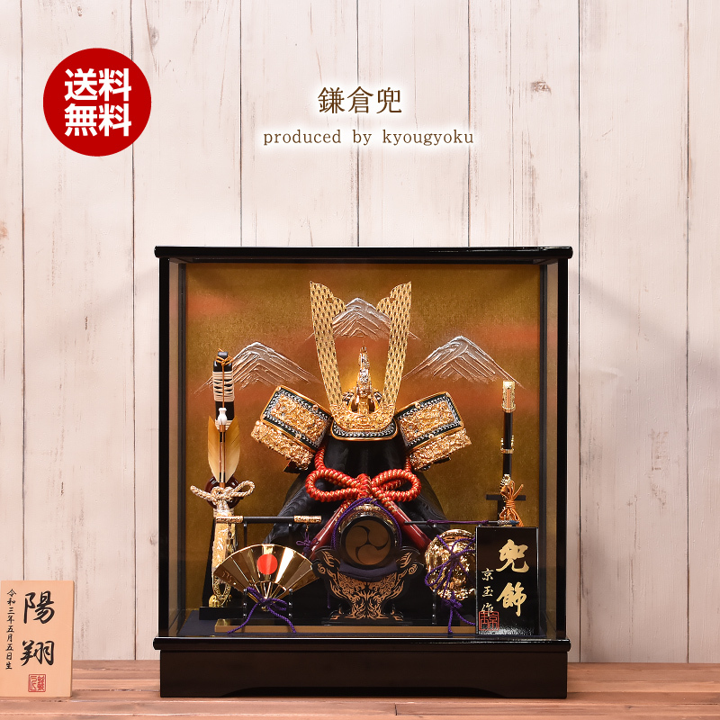 五月人形 コンパクト 鎌倉兜 間口39cm 兜ケース入り飾り【送料無料】【代引き手数料無料】【陣羽織・写真立オルゴール・名入り木札付】