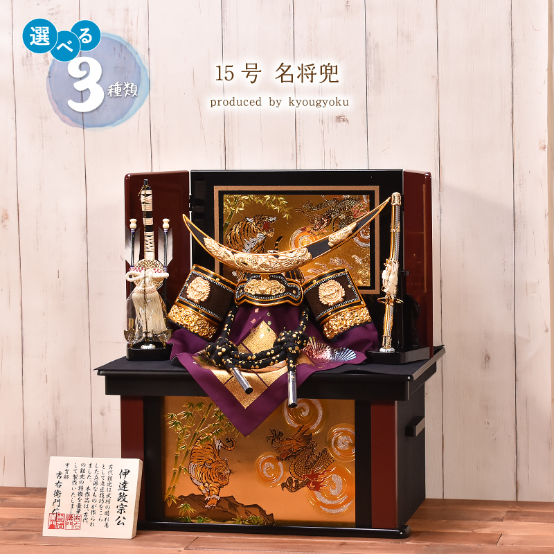 【選べる3種類】15号(伊達・徳川・上杉)名将兜 収納飾り間口47cm 五月人形 コンパクト 収納飾り