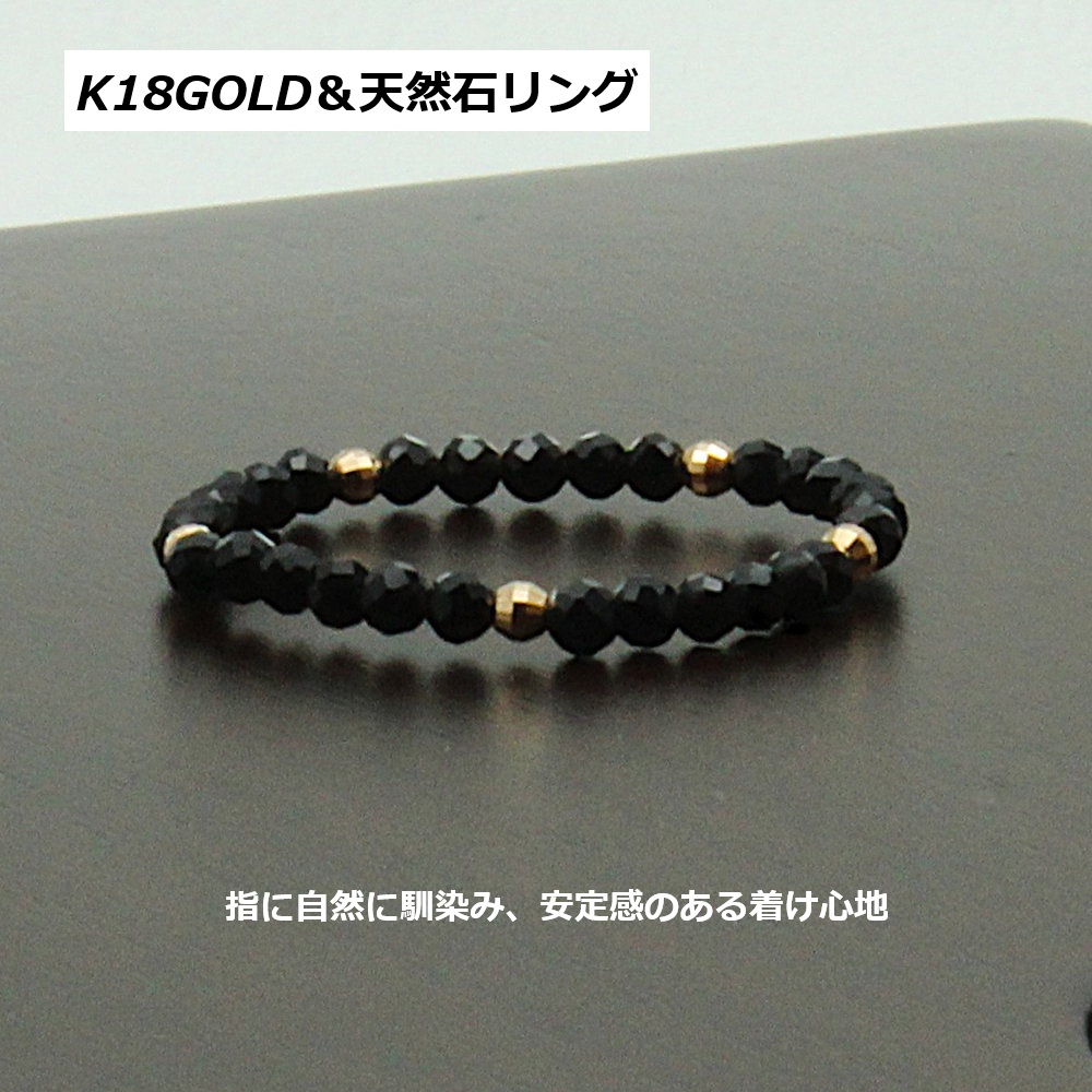 高品質で目立つ【K18ゴールド 天然石 オニキス リング 2mm 日本製 指輪 ブラック ゴムリング 伸縮 パワーストーン ギフト】ghri2 当社オリジナルモデル 京海堂