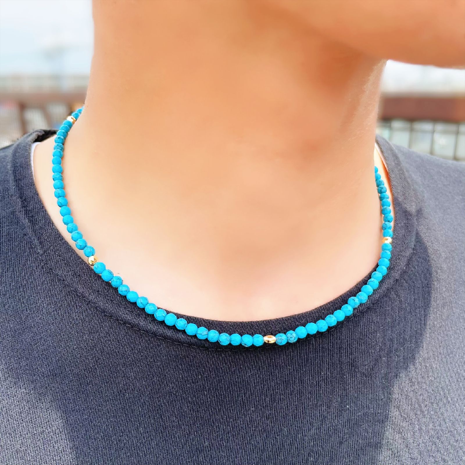 【彩りが最高です】 k18 ビーズ カットターコイズ ネックレス アジャスター有 KGn2 最強金運 勝負運 パワーストーン ルチル数珠 お守り メンズ レディース 七夕 海の日 夏祭り 花火大会 浴衣 デート 贈り物 ギフト