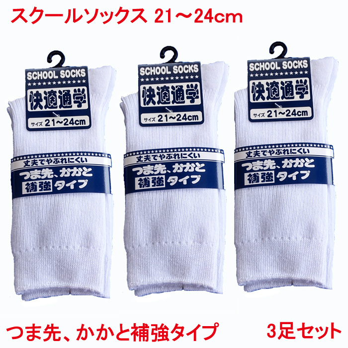 | スクールソックス 白 クルー丈 無地 21-24cm 3足セット |