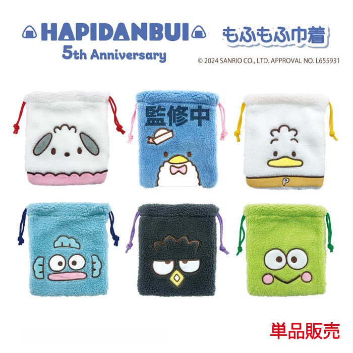 はぴだんぶい もふもふ巾着 単品販売 ポチャッコ タキシードサム あひるのペックル ハンギョドン バッドバツ丸 けろけろけろっぴ