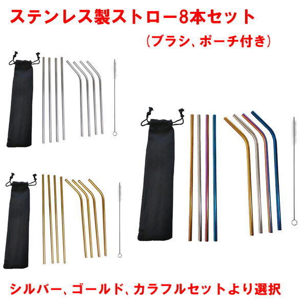 | ステンレス製ストローの8本セットを販売致します。 真っすぐなストロー4本、曲がったストロー4本、 掃除用のブラシ1本、ポーチ1袋がセットになっています。 色は以下の3セットからお選びください。 1,シルバーのみ8本 2,ゴールドのみ8本 3,シルバー・ゴールド・ブルー・レインボー各2本、 ステンレス製なので、繰り返し使えてエコで経済的。 脱プラスチック社会にふさわしい商品です。 付属のブラシで洗えば、衛生的に使い続けられます。 また、環境面のメリットだけでなく、プラスチックストローに比べて保冷性が高いので、 冷たい飲み物を、冷たいまま口まで運んでくれるという、 飲む私たちにとってもいい事があります♪ <セット内容> ストレートストロー 4本 曲線ストロー 4本 ブラシ 1本 ポーチ 1袋 <サイズ> ストロー:長さ約215mm(ストレートタイプ)、長さ約205mm(曲線タイプ)、太さ約6mm ブラシ:長さ約225mm <材質> ステンレス <注意事項> 食洗器のご利用はお控えください。 ※ブラウザ、モニターの色調により、実物の商品とカラーに多少の違いがございます。 ※色などイメージと違うという理由での返品・交換は受け付けておりません。 予めご了承お願い致します。 こちらの商品はメール便・定形外郵便の送料は無料です。宅配便は別途有料です。 ⇒その他の日用品はこちらをクリック |