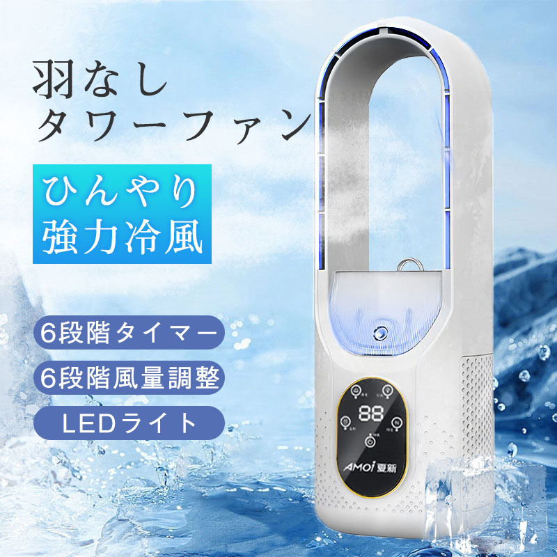 送料無料 扇風機 冷風機 羽なし 6段階 タワ タワーファン 加湿 サーキュレーター 人気 LEDライト 卓上冷風扇 USB給電 送風機 タイマー暑さ対策