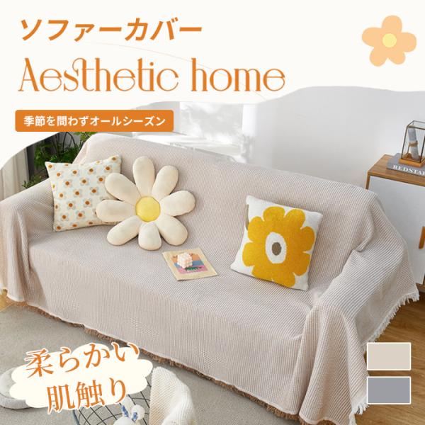 ソファーカバー 3人掛け 肘なし かけるだけ マルチカバー 長方形 大判 北欧 おしゃれ フリンジ 洗える 無地 オールシーズン