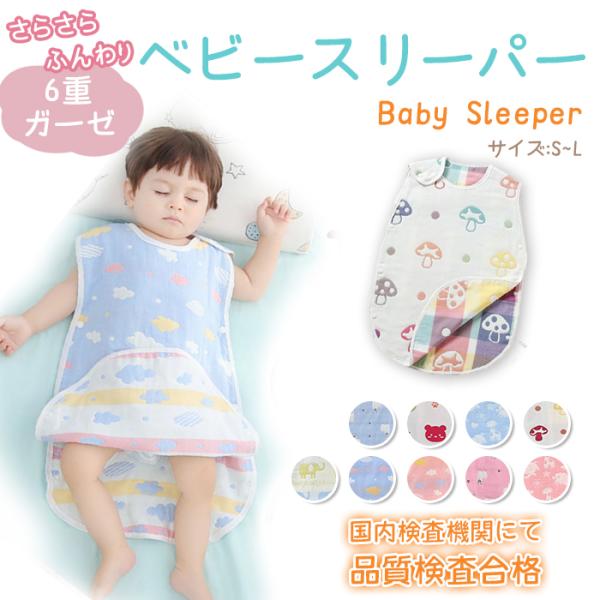 スリーパー キッズ 赤ちゃん 冬用 夏 ガーゼ 出産祝い おくるみ 綿100% 6重ガーゼ ふわふわ オールシーズン 可愛い