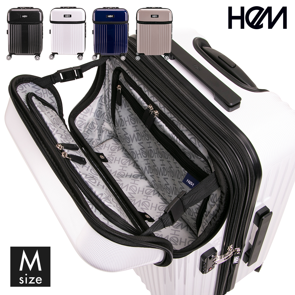 スーツケース Mサイズ キャリーケース フロントオープン トップオープン 1年間保証 中型 拡張機能 静音 軽量 ブランド レディース 旅行 帰省 TSA HeM リム