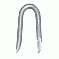 フェンス施工用の又釘。ドブづけメッキで長持ち。フィールドフェンス、亀甲金網等、ワイヤー、有刺鉄線を留めるのに使います。