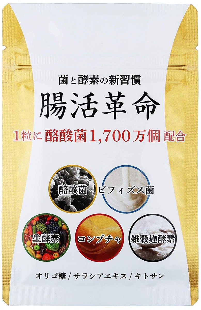 腸活革命は1粒に酪酸菌1,700万個、ビフィズス菌B-3、キトサン、サラシアエキスを配合、さらに話題の酵素、雑穀こうじ酵素、コンブチャ、生酵素を配合したダイエットサプリ