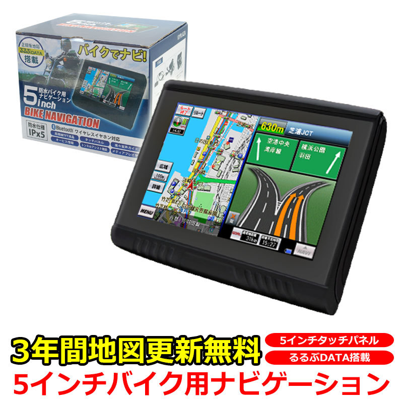 バイク用ナビ 5.0型 タッチパネル 2025年 3年間 地図 更新無料 るるぶ 防水 ポータブル Bluetooth MicroSD 日本語マニュアル バイクナビ