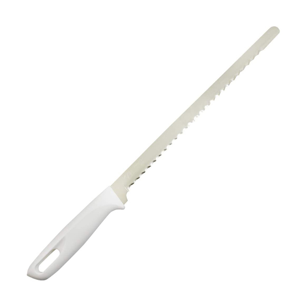 【メーカー】●貝印(株)【特長】●波刃でさらに使いやすい専用形状のケーキナイフ●ホールケーキのスライスや切り分けに便利な刃渡りの長めのサイズ【仕様】●サイズ:3×40×2.5cm●重量:120g●素材・材質:刃部/ステンレス刃物鋼、ハンドル/ポリプロピレン(耐熱温度110度)●生産国:日本【JANコード】4901601210231