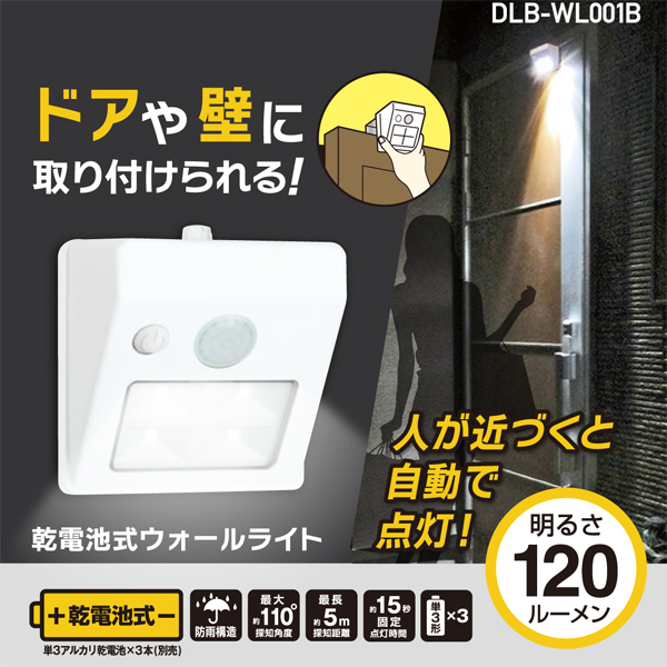 ダイシン 大進 LEDライト 照明 ライト ウォールライト 扉に取り付ける 引っ掛ける 壁につける センサーライト 自動点灯 自動消灯 防雨構造