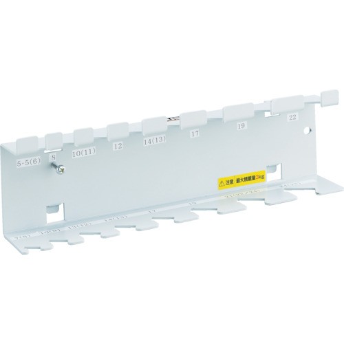 ●最大積載量(kg/個):3●幅(mm):250●奥行(mm):44.6●高さ(mm):76●ホルダ数(個):8ヵ所●色:ホワイト●スパナ二面幅5.5mm〜24mm使用可能