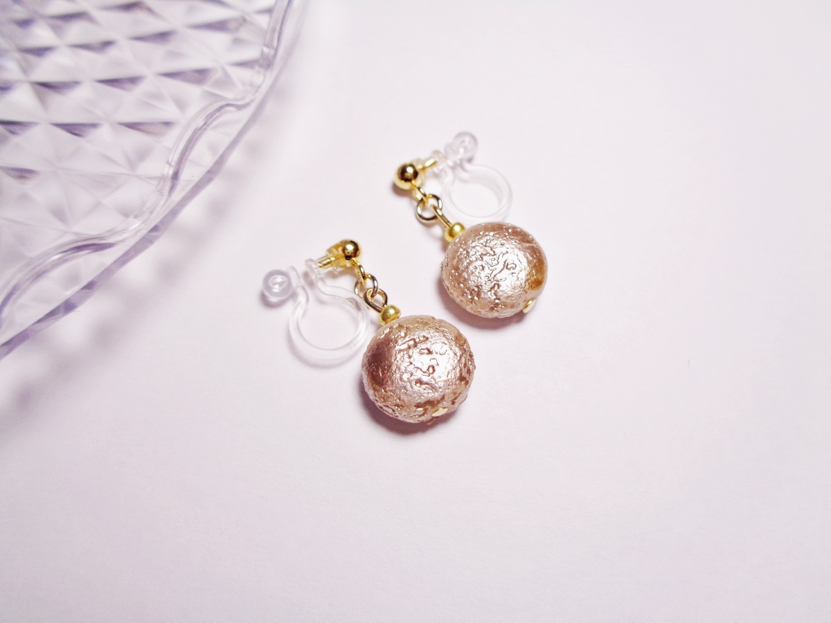 I2043GD-PRイヤリング 樹脂ノンホールピアス 金属アレルギー対応 金アレ コットンパール フラット ブラウンベージュ