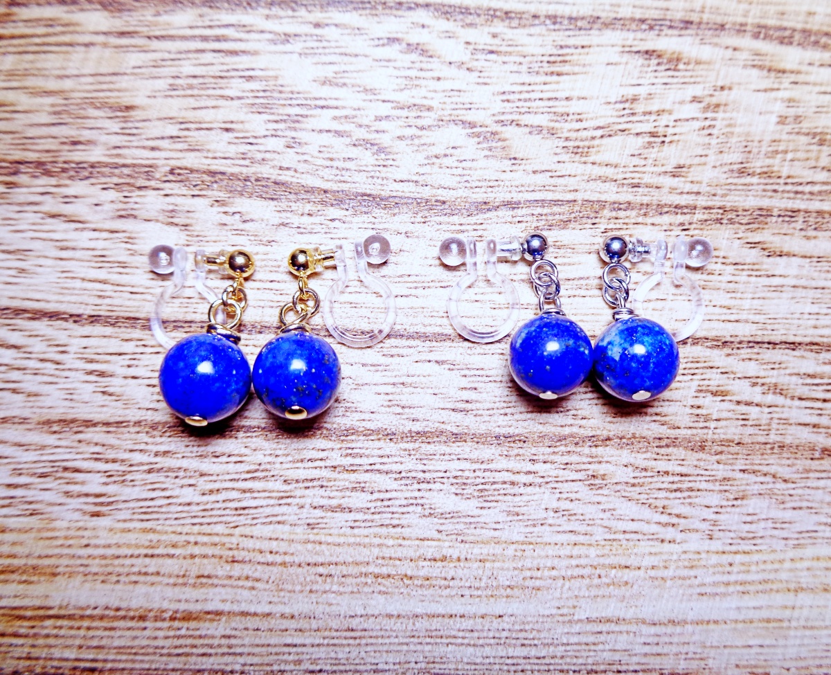 I831BLU-RAP 金属アレルギー対応 金アレ 樹脂ノンホールピアス イヤリング 天然石 ラピスラズリ