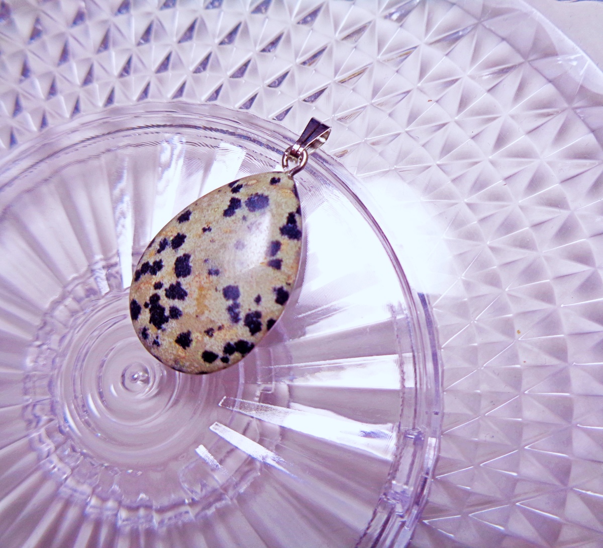 天然石ダルメシアンジャスパーのドロップ型ペンダントトップです。
