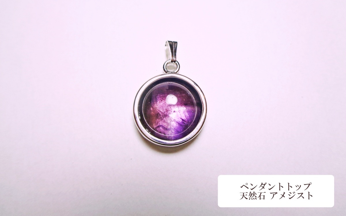 PT0036-AME-SV12-2 ペンダントトップ 天然石 アメジスト ハーフラウンド 一粒 12mm 金属色シルバー 現品限り