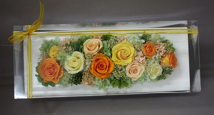プリザーブドフラワー*ケース入りフレームアレンジ(オレンジ系)