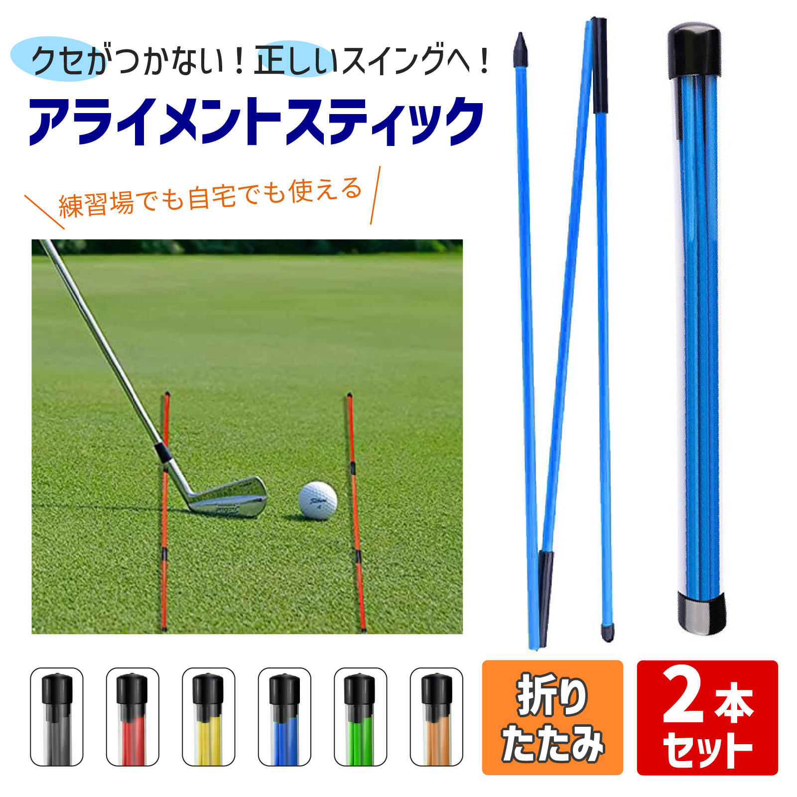 ゴルフアライメントスティック 2本セット 全長122cm スイング練習器具 折りたたみ式 軌道修正 方向チェック スイング矯正 ケース付き グラスファイバー製