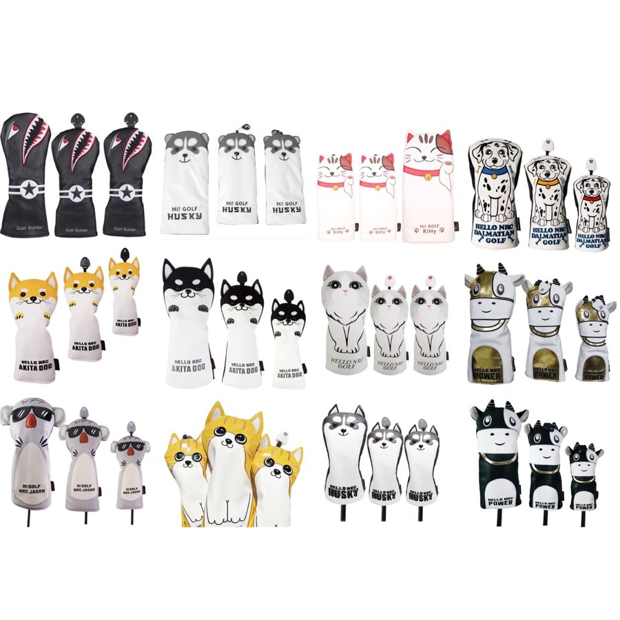 ゴルフヘッドカバー ドライバー440cc 460cc用カバー ウッド用カバー UT用カバー 単品 防水仕様 ハスキー 秋田犬 ぶち猫 ラグドール ネコ コアラ サメ ライオン Dog ダルメシアン 乳牛 送料無料