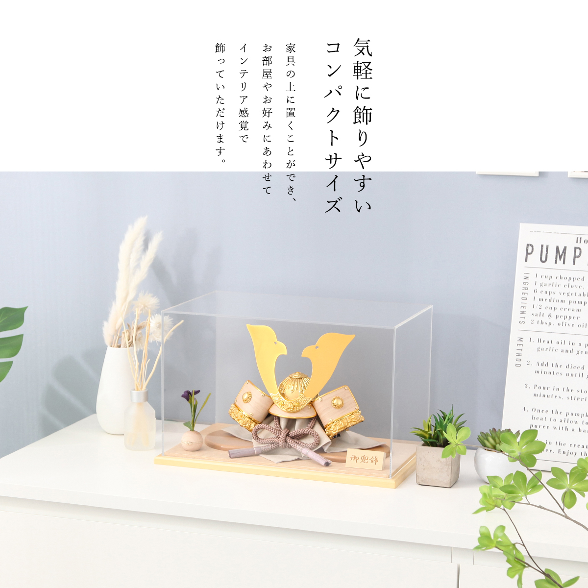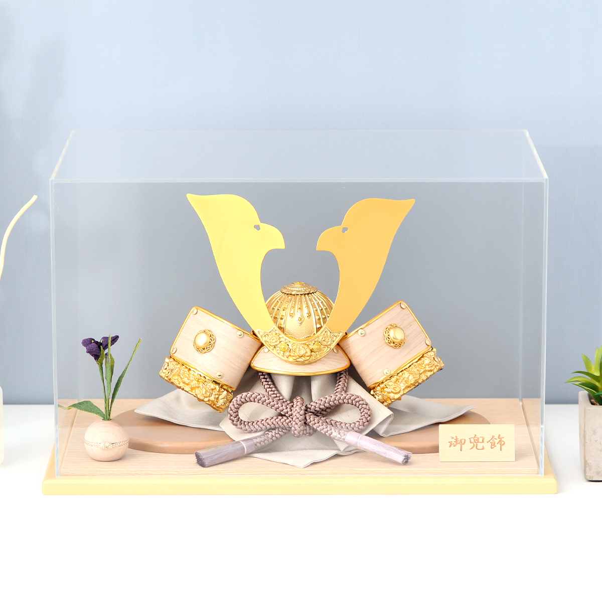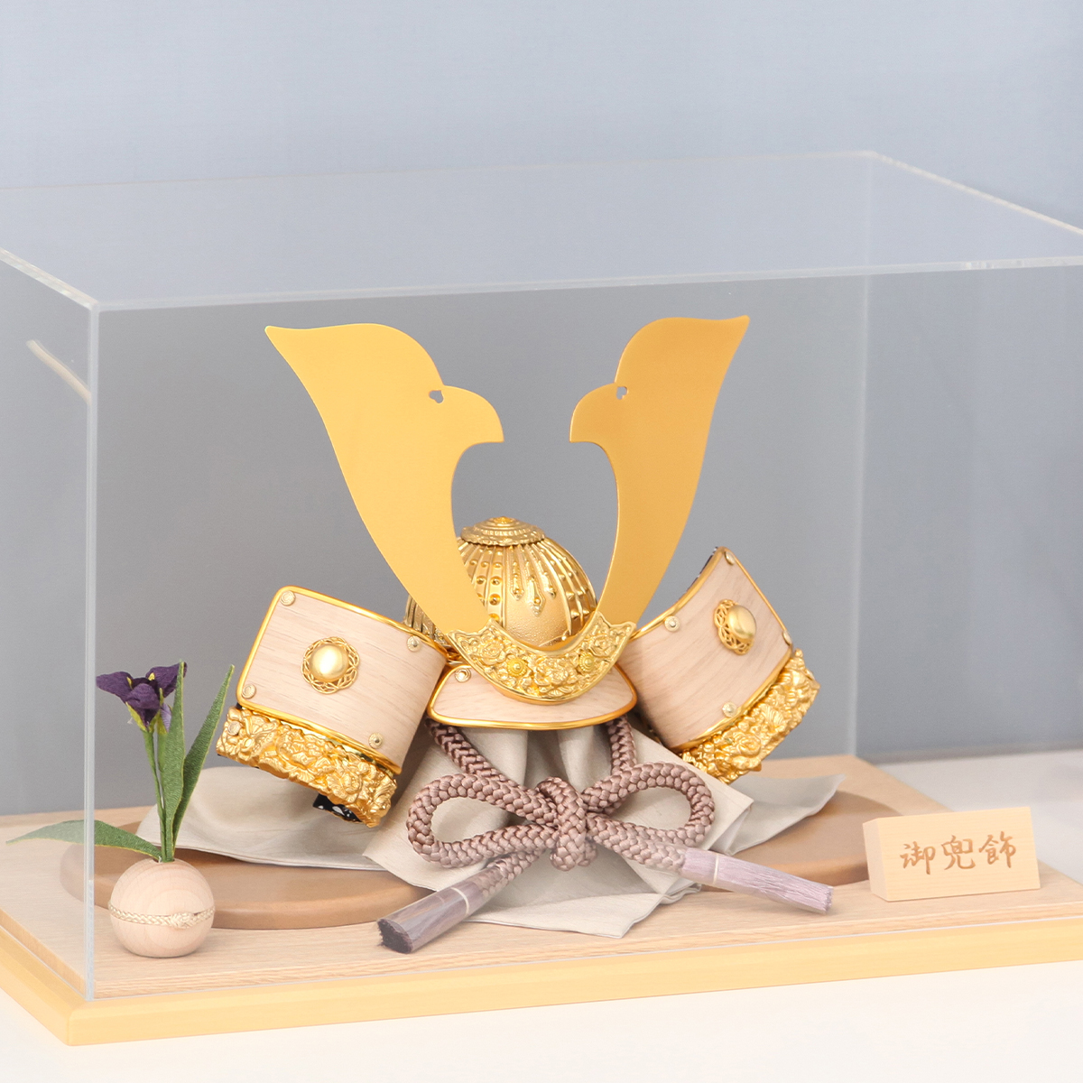 五月人形 8号 木目柄 金兜 アクリルケース飾