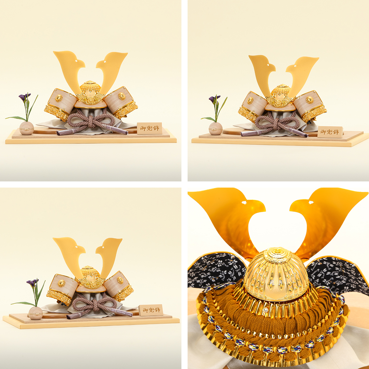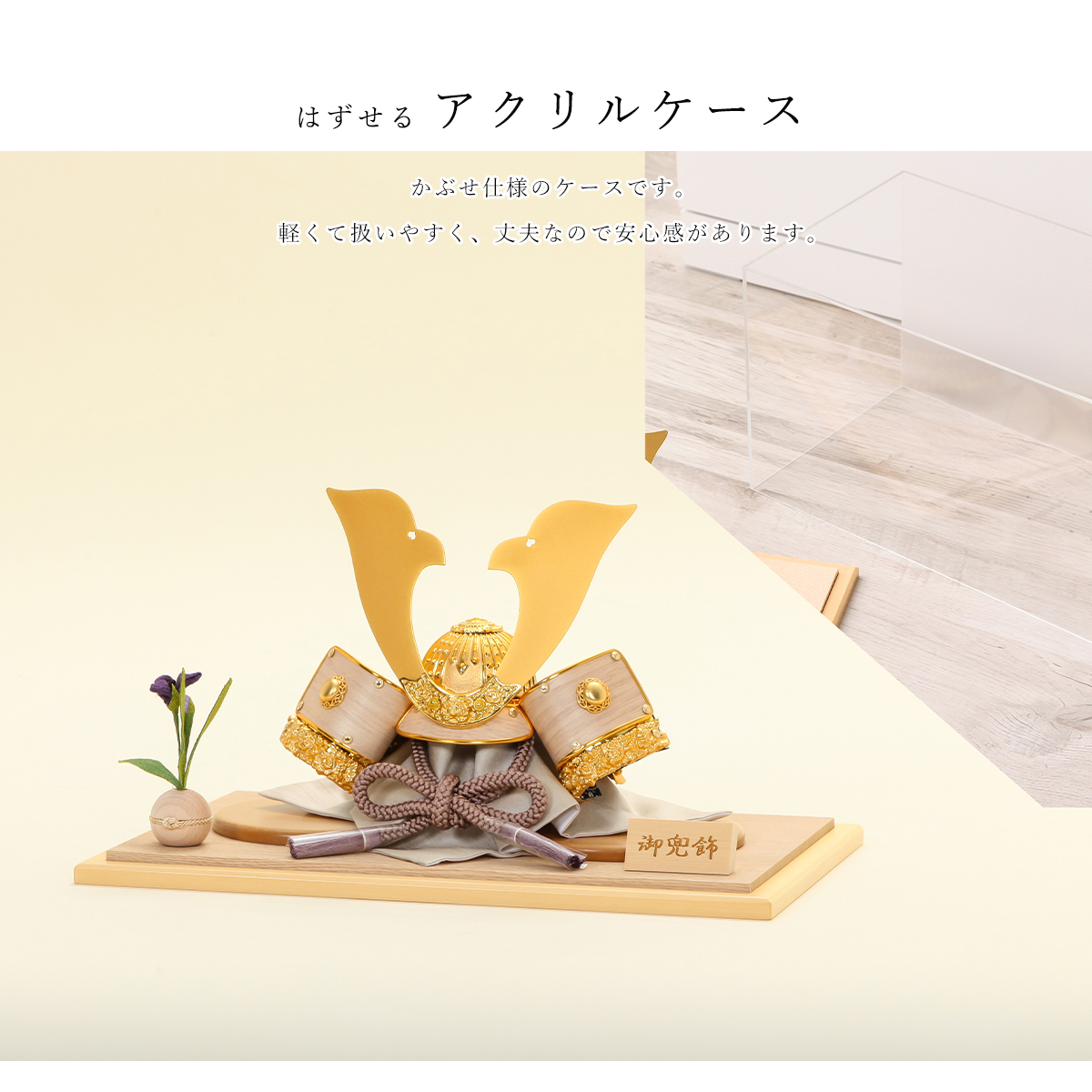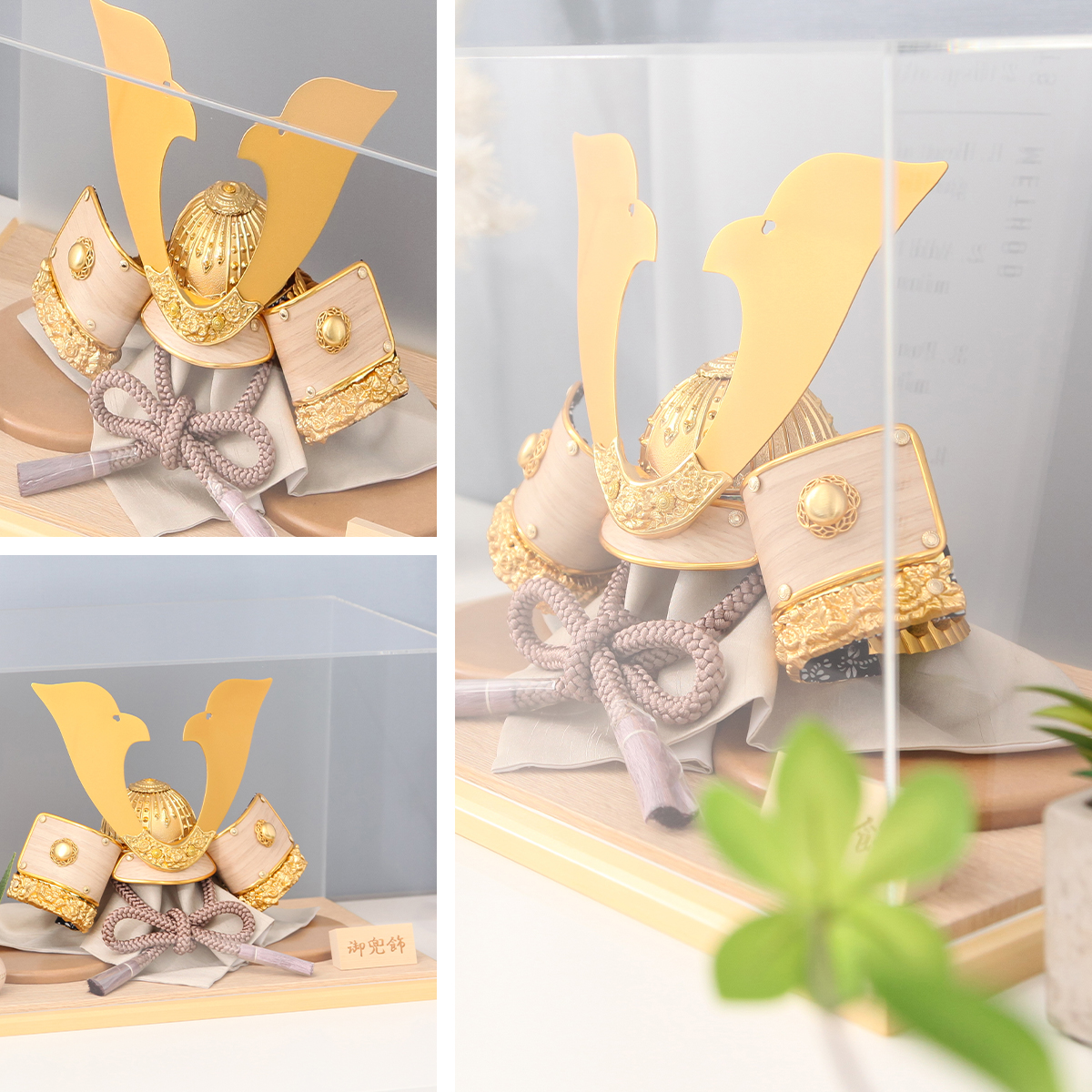 五月人形 8号 木目柄 金兜 アクリルケース飾