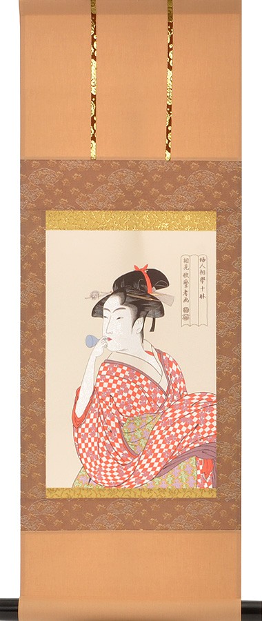 浮世絵ミニ掛軸 掛け軸 ビードロを吹く娘 喜多川歌麿