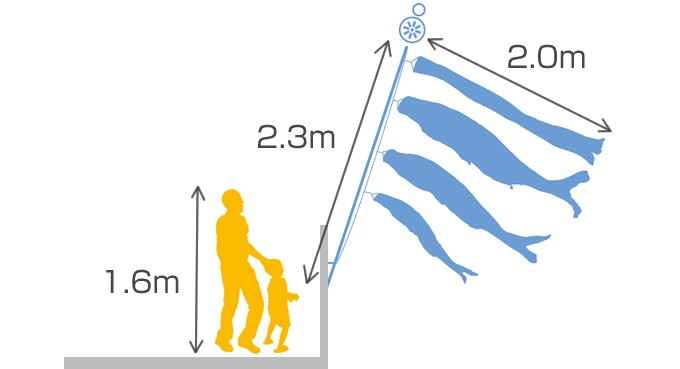 吹流し:2m 黒鯉:2m 赤鯉:1.5m 青鯉:1m