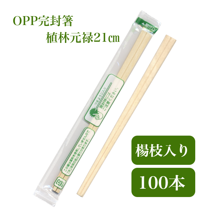 割り箸 100膳入 個包装 九州紙工 OPP完封箸 植林元禄箸 21cm 爪楊枝入 衛生的 テイクアウト 飲食店 お弁当 感染対策