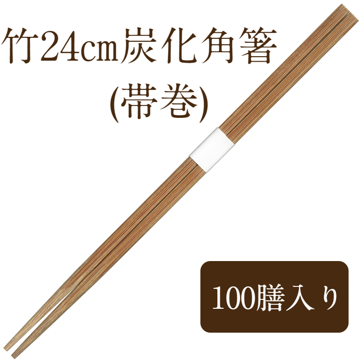 竹箸 使い捨て 100膳 炭化 角箸 白帯巻 24cm 九州紙工 業務用 高級感 飲食店 TKC241
