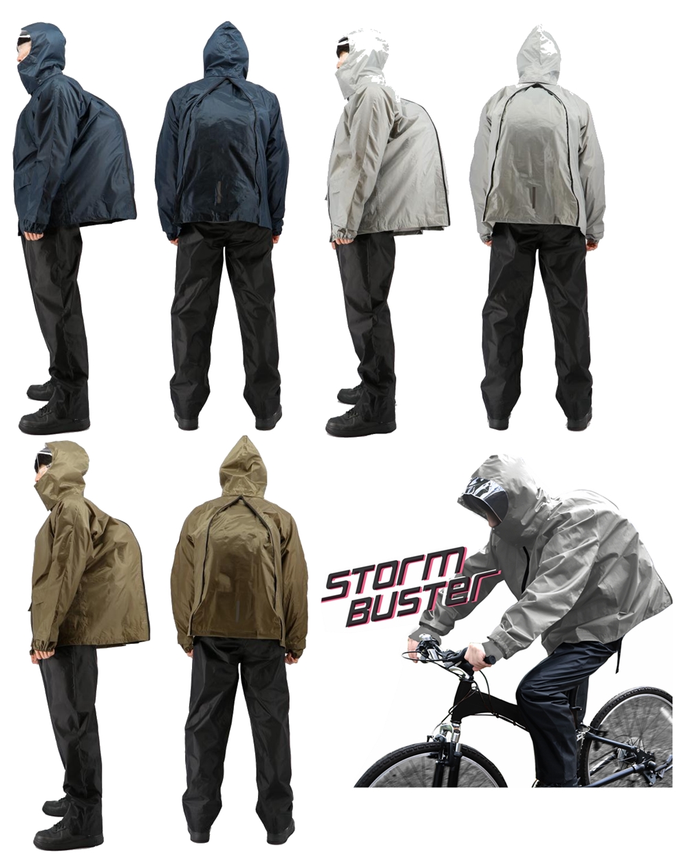 雨の日のリュック・自転車移動に大活躍!「ストームバスター」リュック対応レインスーツ