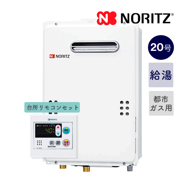 RC-7607Mリモコン付きセット!■ノーリツ【GQ-2039WS-1+RC-7607M】<20号ガス給湯器+台所音声ガイドリモコン> オートストップ 屋外壁掛型 都市ガス用(12A13A)