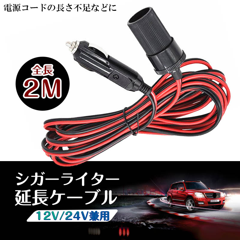 車シガーライター延長ケーブル 2m シガーソケット 延長コードDC電源 延長プラグ 12V/24V兼用電流