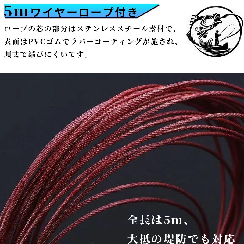 ■ワイヤーの長さは5m。高い堤防でも対応できる十分な長さを持っています。