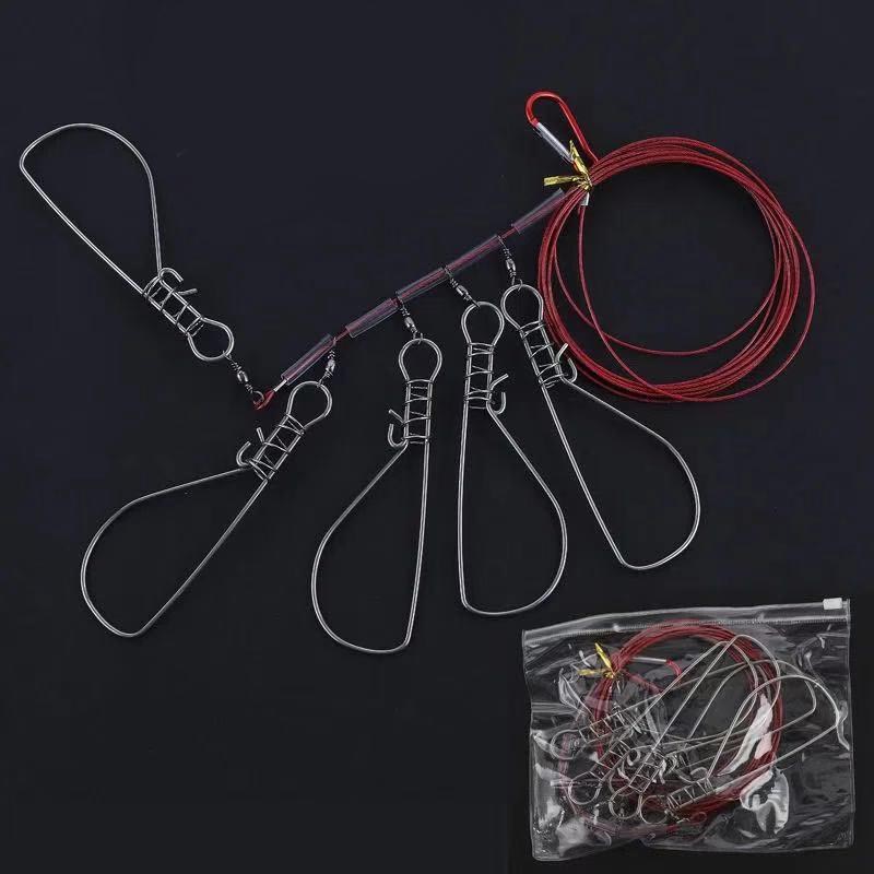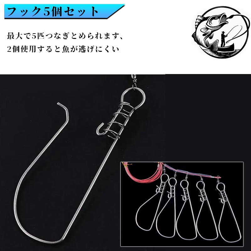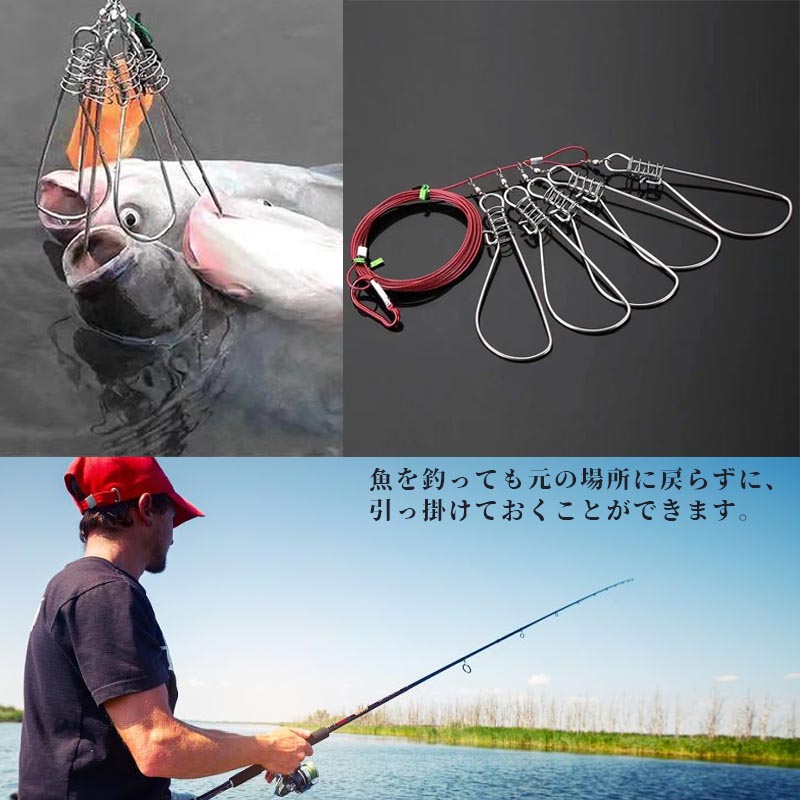 ストリンガー 大物釣り 新鮮 5個セット ワイヤー ロープ付 鮮度保持 フィッシングツール フィッシュグリップ フック型 レジャー 釣り具
