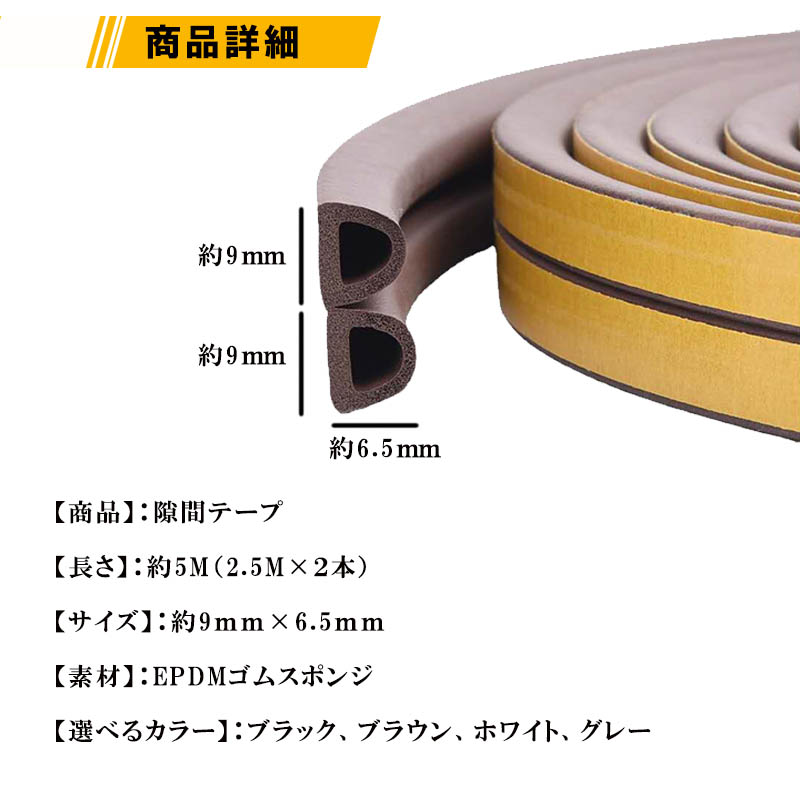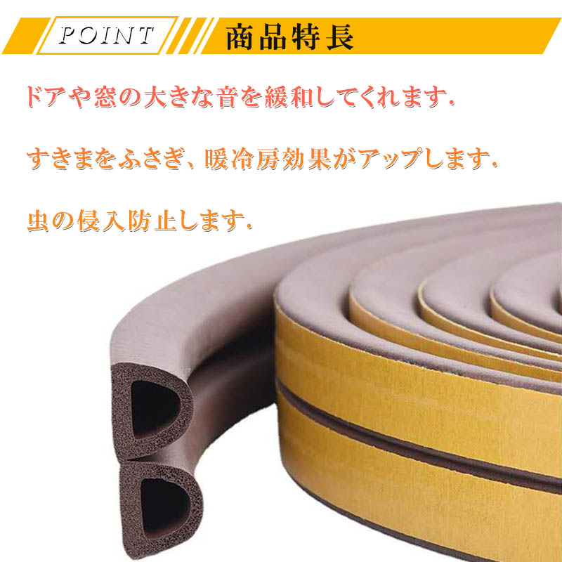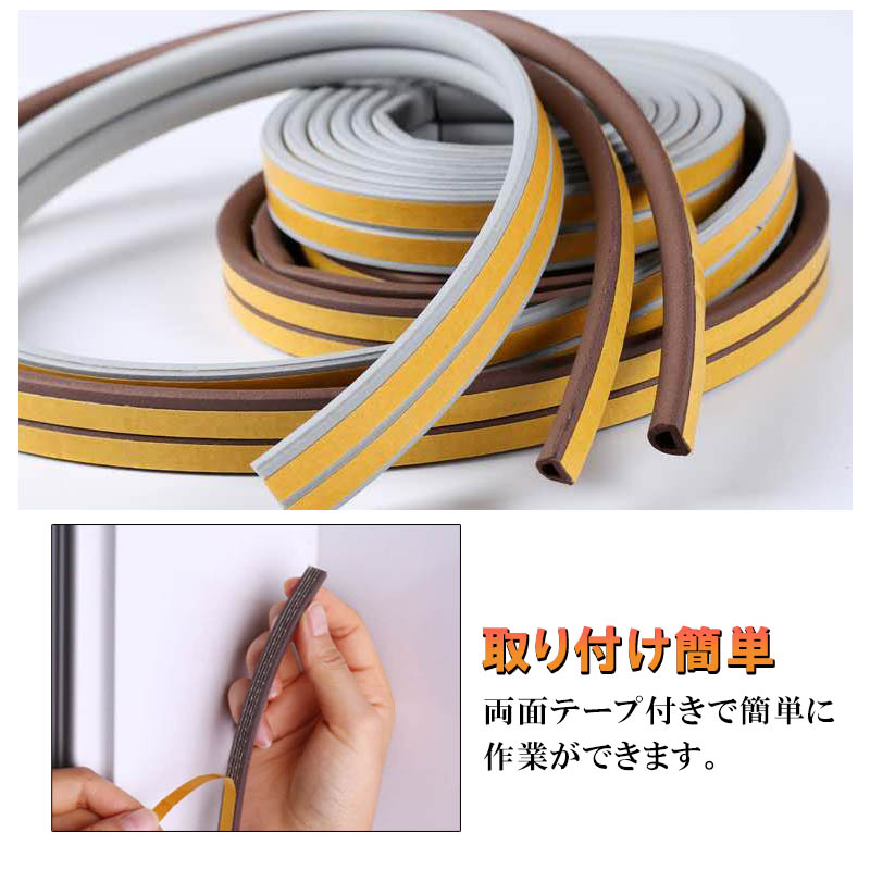 隙間テープ .クッション隙間テープ 5m ドア 窓 引き戸 隙間風 防止 ゴム スポンジ 防音 茶 白 黒 灰色 虫侵入防止 衝撃 緩和 静音 隙間風 すきま風