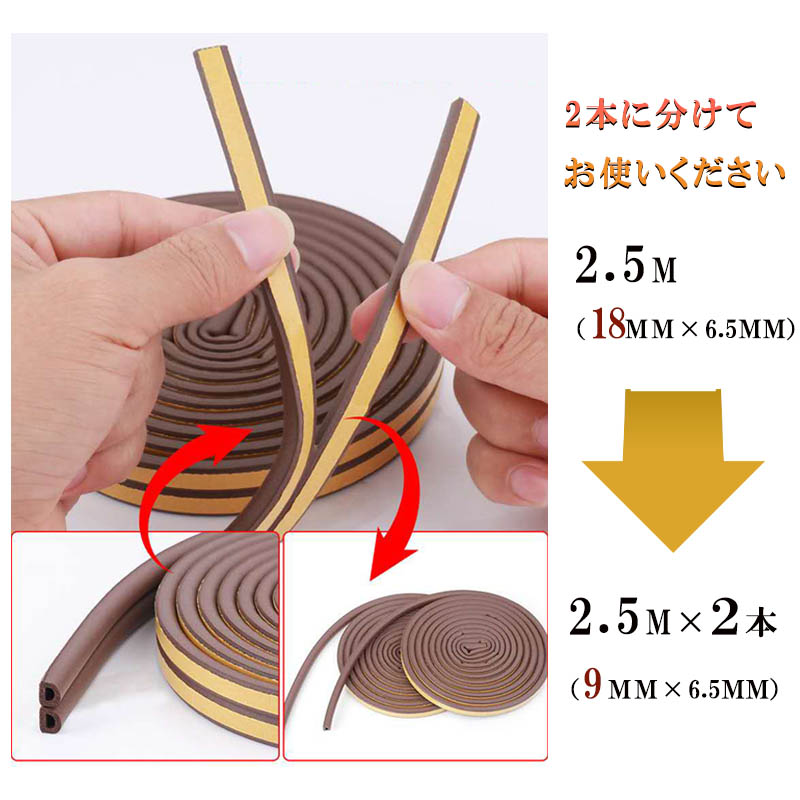 【長さ】:約5M(2.5M×2本)※隙間テープは中央から裂いてお使いください。