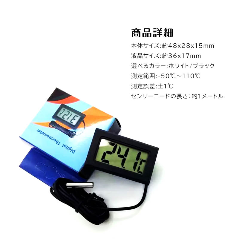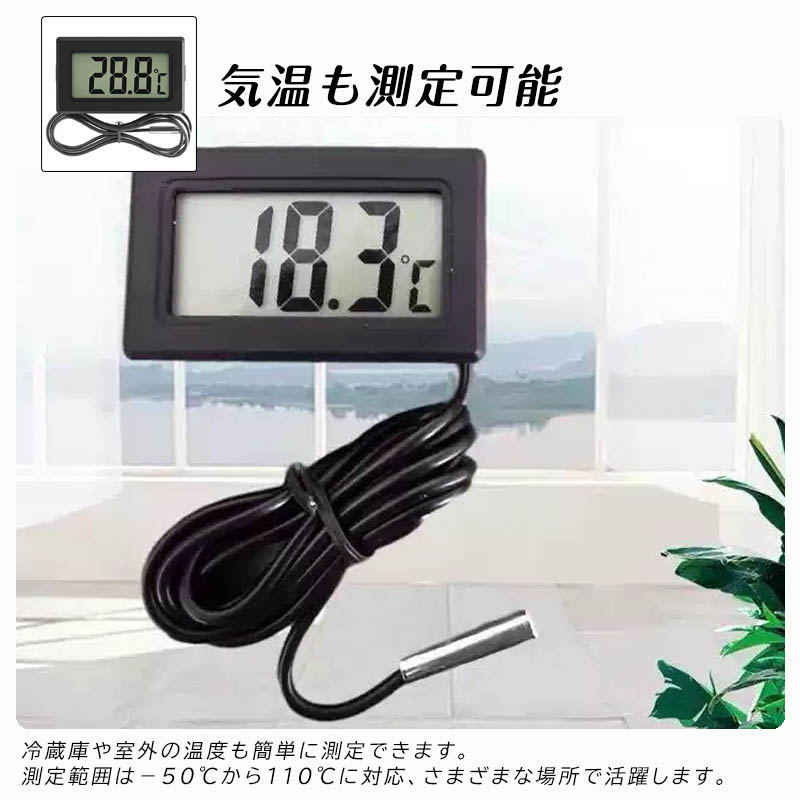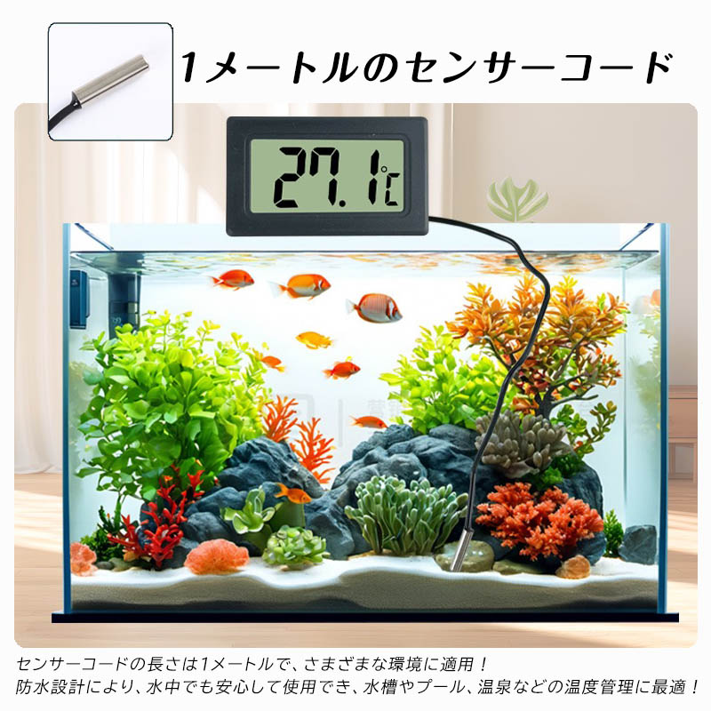 デジタル 水温計 温度計 水族箱温度計 センサーコード長さ1m LCD 液晶表示 アクアリウム 冷蔵庫用 水族館用 気温 -50℃〜110℃防水温度センサー爬虫類温度計