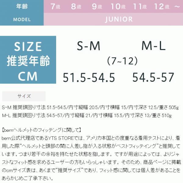 ■ブランド:bern バーン■商品名:BANDITO ALL SEASON■カラー:BE-BB03E21MBL MATTE BLUE マットブルー BE-BB03E21SWG SATIN WHITE GALAXY サテンホワイトギャラクシー ■フィッティング:US FIT:欧米人の頭の形で多い楕円型設計■製法/ディテール:thin SHELL: ABSやポリカーボネートで作られるシェルとEPSフォームの絶妙な組み合わせによって作られるテクノロジー。頑丈な仕上がり。 CRANK FITインナーシステム:ダイヤルでヘルメットインナー後頭部のフィット感を調整できるbern独自のサイズ調整システム。取得安全規格CPSC、EN 1078、EN 1077B■商品説明:ジュニアユニセックスモデル (推奨年齢3歳-児童) bernの中でも人気を誇るWATTSをそままスケールダウンさせたジュニアモデルBANDITO(バンディート)。 スケートボード スケボー BMX 自転車 マウンテンバイク スノーボード スノボー などにおすすめのモデル。軽量・耐衝撃性に優れたbern独自のテクノロジーはジュニア用でも健在。後頭部でフィット感を調整するCRANK FITインナーシステムを搭載しているため、成長の早い年頃のお子様にもしっかりフィット。※推奨年齢は目安