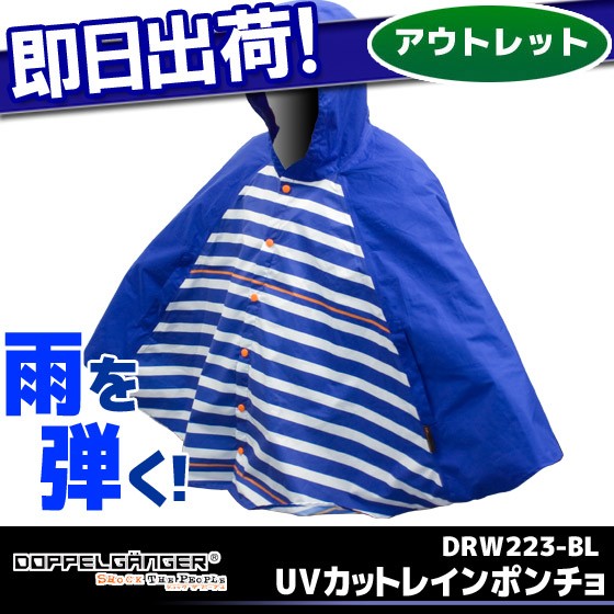 決算処分 アウトレット UVカットレインポンチョ DOPPELGANGER DRW223-BL 自転車 雨具 あまぐ レイ