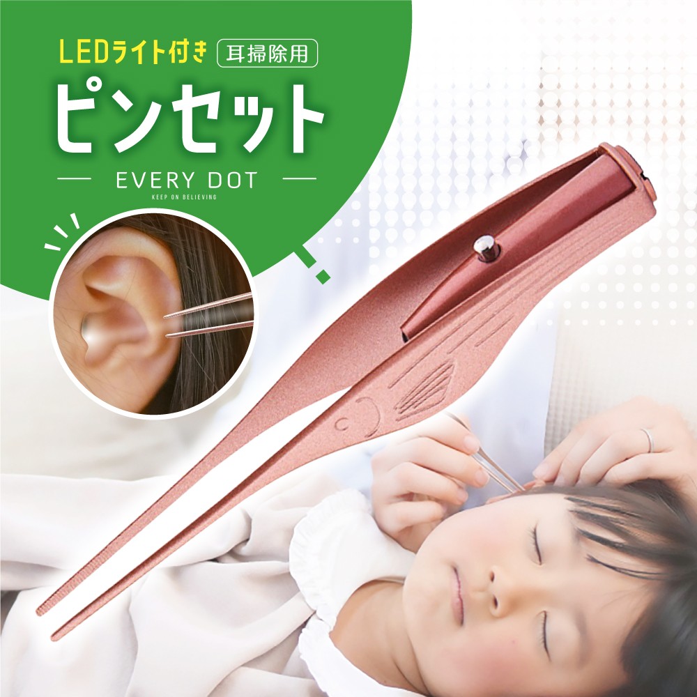 LEDライト付きのピンセット、耳掃除の光る耳かきピンセット、ライト付きで見えにくい耳の奥まで明るく照らすから耳を傷つけずに素早くお手軽に耳掃除ができます。 良く見えるから耳かきを嫌がるお子様も、これなら安心して耳かきができます!光るみみかき用ピンセットが安心して 幼児 お子様用 や 介護用 としてもお使いいただけるピンセットです。 EVERYDOT ライト付きピンセットおすすめの ポイント !