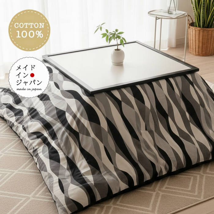 こたつ布団カバー ストリーム モノ 200×200cm 波柄 正方形 綿100%