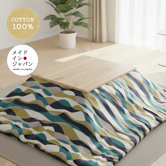 こたつ布団カバー ストリーム カラー 北欧 200×200cm 波柄 正方形 綿100%