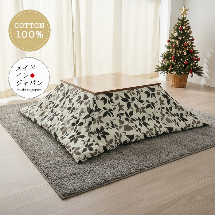 こたつ布団カバー ドルチェ ベージュ 200×200cm 葉柄 正方形 綿100%