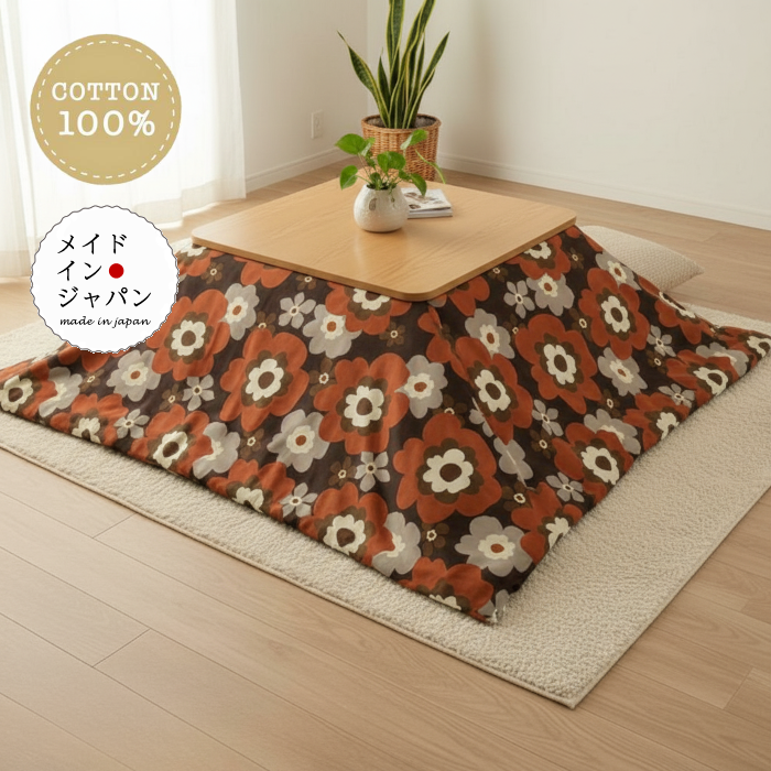 こたつ布団カバー サンフラワー ブラウン 北欧 茶 200×200cm 花柄 正方形 綿100%